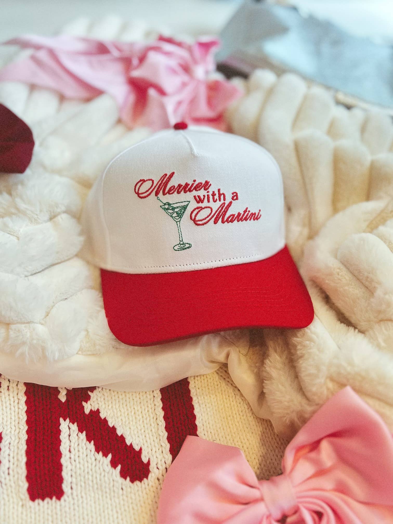 - Celebrate the festive season in style with our Merrier With A Martini Embroidered hat!